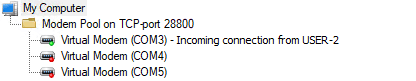 As a result, the program creates several virtual modems listening on specified TCP port.